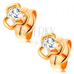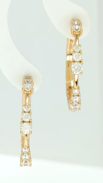 A sárga 14K arany fülbevalónak lóhere körvonal alakja van, amelynek a közepén egy csillogó, csiszolt brilliáns helyezkedik el, átlátszó színben. A gyémánt kör alakú, enyhén kidomborodó és négy fényes pálcával van megfogva. Biztonságos viselését stekker teszi lehetővé. Fülbevaló méretei: 4 x 4 mmGyémánt átmérője: 2 mmGyémántok teljes súlya: 0,07 ctTisztaság: