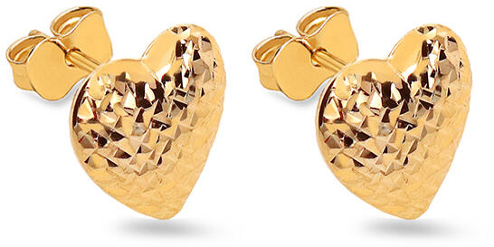 Romantikus fülbevaló sárga aranyból. A kidudorodó szívecskék formájú fülbevaló vésett, magasfényű felülettel rendelkezik. Az ékszer mindennapi viseletre alkalmas.