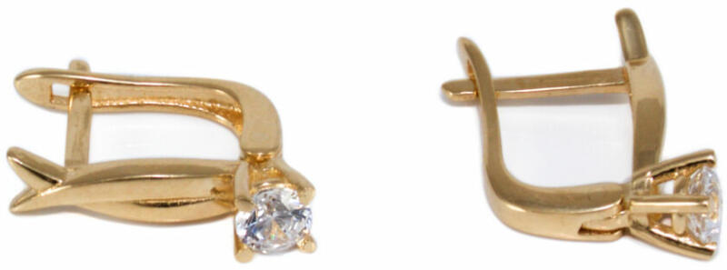 Modern stílusú, karmos foglalatban cirkónia kővel ékített arany fülbevaló.