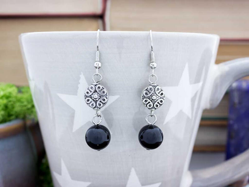 Ónix ásványgyöngyből készült mutatós beakasztós fülbevaló. Amit a ónixról érdemes tudnod: Az ónix általában fekete, néha előfordulhat fehér, szürkés csíkozódással is. Lelki gyógyhatása: Az ónix egy védelmező kő, amely a negatív energiák ellen véd. Csökkenti a befolyásolhatóságunkat, növelve így az önbizalmunkat, egészséges egónkat. Egyensúlyba hozza a k