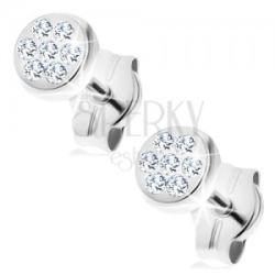 Fénylő fülbevaló 14K fehér aranyból, amely kör alakú, sima felülettel. Közepén csiszolt cirkóniák helyezkenek el virág alakban elhelyezve. Biztonságos viselését stekker teszi lehetővé. Fülbevaló átmérője: 4 mmSúly: 0,3 gFémjelzéssel ellátott. Az ár egy párra vonatkozik.