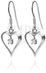 925 ezüstből készült akasztós fülbevaló nyújtott szívecske alakban. A szív egyszerű kampóra van függesztve. A szívecske közepét a felső ívhez erősített karmos fogatba ágyazott gömbölyű cirkonkő díszíti. A fülbevaló tükrösen fényes kivitelben készült. A szívecske mérete: 12 x 15 mmA fülbevaló tömege: 1,8 gFémjelzéssel ellátott. Az ár egy párra vonatkozik.