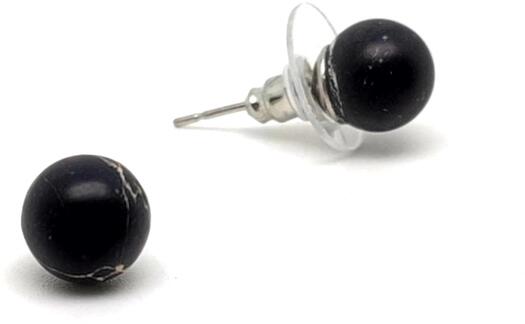 Regalit fülbevaló (golyó szinezett fekete Ásvány fülbevaló) Egyedi ásvány ékszer.