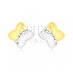 A fülbevaló kétszínű 9K aranyból készült, kereszt azonos méretű, gömbölyű ágakkal. A közepén egy kerek, cirkóniákkal kirakott ív húzódik. A két részre osztott fülbevaló egyik felét fehér arany bevonat díszíti. A fülbevaló felülete sima, tükörfényes. Bedugós, stekkeres kivitel. A fülbevaló méretei: 10 x 10 mmA fülbevaló súlya: 0,5 gFémjelzéssel ellátott.