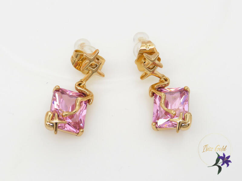 Antiallregén egyedi kidolgozású fülbevaló kocka cirkóna kővel díszes foglalatban Szin: 18K Méret:25x10 mm Kő:7x10mm Bedugós A forgalmazott divatékszerek alapanyaga nikkel és ólommentes ezért többnyire nem okoznak allergiás tüneteket, nyugodtan hordhatják fémérzékeny emberek is. Általában nem színezik a bőrt és más divatékszerekhez képest nagyságrendekkel jobb kopás