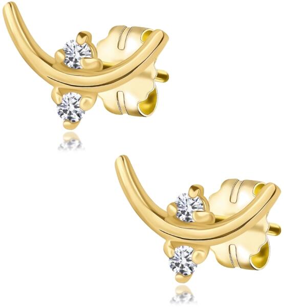 Az 585 arany fülbevalót egy kerek, csiszolt, átlátszó gyémánt alkotja. A briliáns négy fényes, lekerekített végű pálcával van rögzítve, amelyek keskeny, hosszúkás foglalatot alkotnak. Biztonságos viselését stekker teszi lehetővé. Fülbevaló méretei: 2,3 x 2,4 mm Egy gyémánt átmérője: 1,25 mmGyémántok teljes súlya: 0,02 ctTisztaság: SISzín: H-IFülbevaló súlya:
