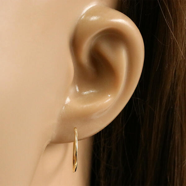 Arany 9K fülbevaló karikák, vékony vállakkal. A fülbevalók felülete sima és tükör simára csiszolt. Csőzáras karika – önmagába záródó, vagyis a vékony szár a szemben lévő csőbe kell illeszteni Átmérő: 17 mm Belső átmérő: 15 mm Szélesség: 1 mm Fülbevalók súlya: 0,27 g Az ár egy párra vonatkozik. Fémjel - van.