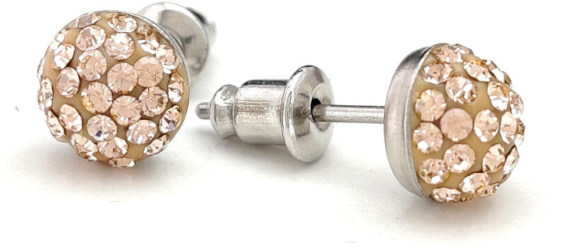 Csillogó aranysárga Swarovski kristállyal díszített shamballa félgömb fülbevaló. A fülbevaló alapja ezüstszínű nemesacél. A kristályok ragasztott foglalatban helyezkednek el. Időtálló, mutatós ékszer. Antiallergén ékszer. Fülbevaló átmérője: 7 mm. A nemesacél ékszerek rendkívül népszerűek kedvező tulajdonságaik miatt. A nemesacél semmilyen nikkelsót nem bocsá