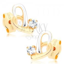 Fülbevaló 9K aranyból kétszínű vonalból egyenetlen szív alakban. Az alsó részben egy csillogó, átlátszó, kerek cirkónia helyezkedik el négy karommal. A fülbevaló felülete ródiummal kezelt, miközben sima és fényes. Biztonságos viselését stekker biztosítja. A fülbevaló méretei: 5 x 8 mmA fülbevaló súlya: 0,5 gFémjelzéssel ellátott. Az ár egy párra vonatkozik. A