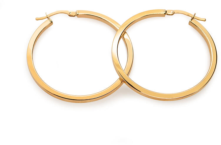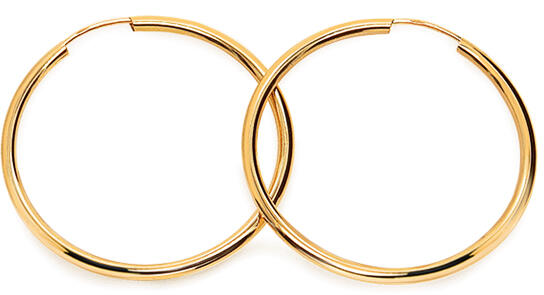 A fülbevalók időtlen stílusban készülnek. Örökzöld fülbevalók 2,5 cm átmérőjű kör alakban. Viselőjük az egyszerűségük ellenére sem marad észrevétlenül. Tizennégy karátos aranyból készülnek.