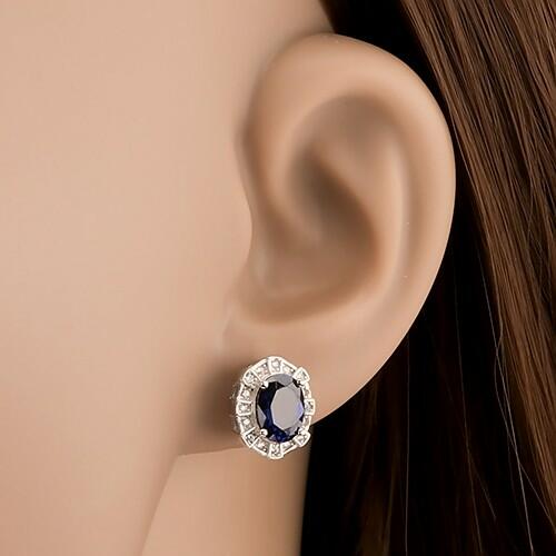 A 925 ezüst nyaklánc ródiumozott felülettel egy ovális, csiszolt, sötétkék színű cirkóniából tevődik össze, amely díszes szegéllyel van övezve és amelyet váltakozva elhelyezett kidomborodó téglalapok és csillogó, átlátszó cirkóniák díszítenek. A biztonságos viselését stekker bizitosítja. Fülbevaló méretei: 10 x 12 mmFülbevaló súlya: 3,3 gFémjelzéssel ell