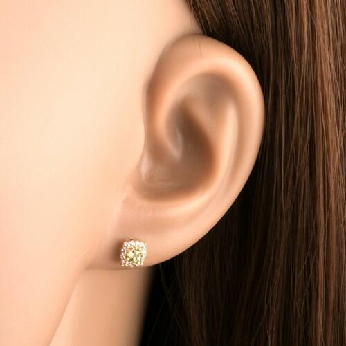 Fülbevaló 9K sárga aranyból, amelyet egy négyzetes körvonal alkot kerek, átlátszó cirkóniákkal. A keret közepébe egy csiszolt, kerek olivin van helyezve világoszöld színben. Biztonságos viselését stekker biztosítja. A fülbevaló méretei: 5 x 5 mmA fülbevaló súlya: 0,5 gFémjelzéssel ellátott. Az ár egy párra vonatkozik.