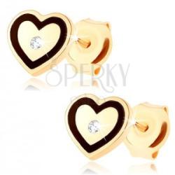 Fülbevaló 14K sárga aranyból, egyenletes szívecske, amely átlátszó cirkóniával van díszítve. A cirkónia a feltűnő fekete fénymázas szív kontúr közepébe van ültetve. Biztonságos viselését stekker biztosítja. A fülbevaló méretei: 5 x 5 mmA fülbevaló súlya: 0,4 gFémjelzéssel ellátott. Az ár egy párra vonatkozik.