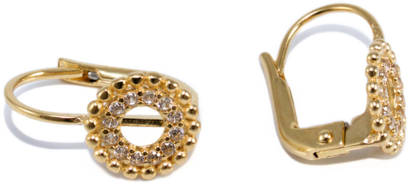 Kör alakú mintával és cirkónia kövekkel díszített gyermek arany fülbevaló.