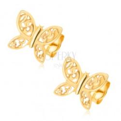 Csillogó fülbevaló 14K sárga aranyból kivágott pillangó alakban, miközben a szárnyai filigrán díszítéssel vannak kiemelve. Biztonságos viselését stekker biztosítja. A fülbevaló méretei: 7 x 6 mm A fülbevaló súlya: 0,3 gFémjelzéssel ellátott. Az ár egy párra vonatkozik.