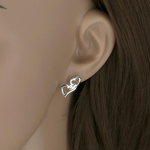 925 ezüst fülbevaló két eltérő nagyságú sziv körvonalból. A kontúrok egyenetlenek, mérsékelten hullámosak és egy oldalra dőlnek, miközben mindkét szív kölcsönösen egymásba kapcsolódik. Biztonságos viselését stekker biztosítja. A fülbevaló méretei: 9 x 15 mmA fülbevaló súlya: 1,57 gFémjelzéssel ellátott. Az ár egy párra vonatkozik.