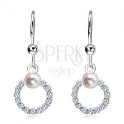 A 925 ezüst fülbevalót egy karika forma alkotja, amely csillogó átlátszó cirkóniákkal van kirakva és felső részét egy fényes, fehér színű édesvizi gyöngy díszíti félgömb alakban. A fülbevaló afrikai horgokon függ apró golyóval. Karika átmérője: 10 mmFülbevaló teljes hossza (kapoccsal): 25 mmFülbevaló súlya: 1,8 gFémjelzéssel ellátott. Az ár egy párra vonatk