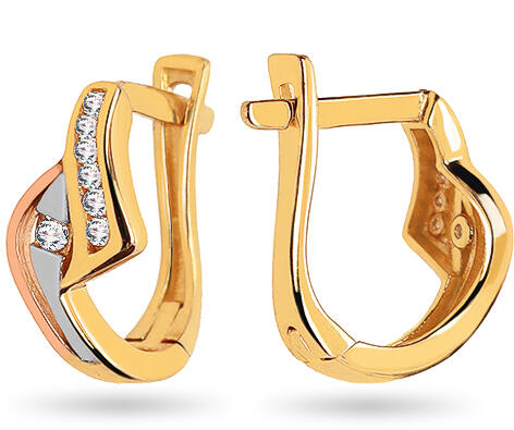 Háromszínű arany fülbevaló cirkóniákkal, modell IZ27141