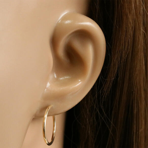A fülbevalók 9K aranyból készült karikák, amelyek lekerekített vállakkal készültek. A fülbevaló felülete tükör simára csiszolt . Csőzáras karika záródás. Átmérő: 18 mm Belső átmérő: 15 mm Szélesség: 1,5 mm A fülbevaló súlya: 0,41 g Az ár egy párra vonatkozik. Fémjel - van.
