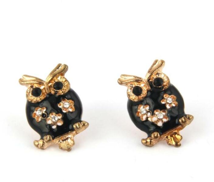 Trendi baglyos fülbevaló, arany és fekete színekben tündökölve.