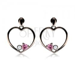 Fülbevaló 925 ezüstből acélszürke színben, amely stekkerből áll fényes oválissal, amelyen egy medál függ szimmetrikus szív kontúr alakban. A medál belseje kisebb rózsaszín szív alakú cirkóniával van díszítve és csillogó átlátszó kővel kerek foglalatban. Biztonságos viselését stekker biztosítja. Méretek: 23 x 27 mmA fülbevaló súlya: 3,1 gFémjelzéssel ellátot