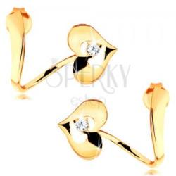 585 arany stekkeres fülbevaló, hullámos ív, amely lefelé szűkül. Az alsó részen egy szívecske található. Közepén cirkóniával, kerek és átlátszó változatban. Biztonságos viselését stekker teszi lehetővé. Méret: 11 x 15 mmSúly: 1,5 gFémjelzéssel ellátott. Az ár egy párra vonatkozik.