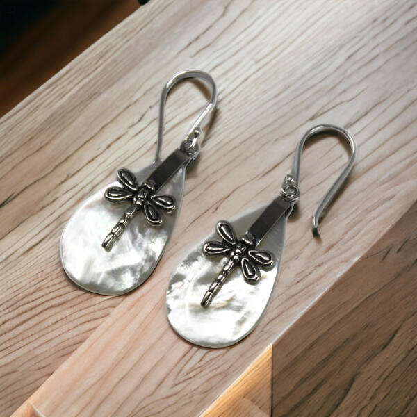A Kagyló és Ezüst Fülbevalók - Szitakötő - MOP egy lenyűgöző ékszer, amely a természet ihlette dizájnnal és a szépséges anyagok felhasználásával hódítja meg a nők szívét. ez az egyedi darab biztosítja, hogy mindig kiemelkedően nézzen ki, legyen bármilyen alkalom is. A szitakötő motívum kagylóval van díszítve, amely lenyűgöző effektust hoz létre a fülbevalón.