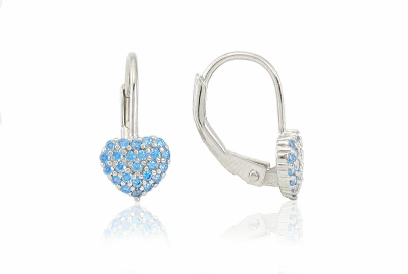 Egyik legszebb szívecskés, világoskék köves ezüst gyermek fülbevalónk ez az apró cirkóniákkal díszített darab.