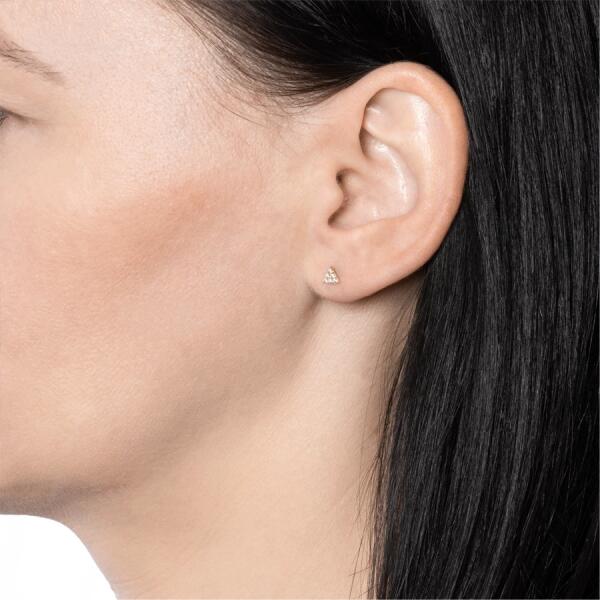 Fülbevaló 9K sárga aranyból egyenetlen háromszög körvonallal kétszínű kivitelezésben. A vastagabb rész ezüst színű és ródiummal kezelt. A körvonal közepében egy kerek, átlátszó cirkónia helyezkedik el. Biztonságos viselését stekker biztosítja. A fülbevaló méretei: 6 x 8 mmA fülbevaló súlya 0,4 gFémjelzéssel ellátott. Az ár egy párra vonatkozik. A ródiummal k