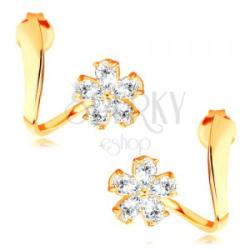 585 arany stekkeres fülbevaló hullámos szalag, amely lefelé enyhén szűkűl. Az alsó részén egy csillogó cirkónia található öt könnycsepp alakú cirkóniával és egy kerek cirkóniával középen. Biztonságos viselését stekker teszi lehetővé. Méret: 11 x 15 mmSúly: 1,7 gFémjelzéssel ellátott. Az ár egy párra vonatkozik.