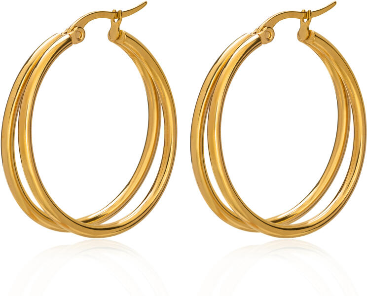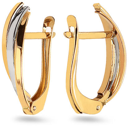 Elegáns fülbevaló, amelyet három finom, lekerekített vonal alkot. A sárga arany vonalakat egy fehér árnyalatú vonal egészíti ki, a ródiumkezelésnek köszönhetően. Az arany magasfokú polírozásával végzett felületi kezelés a fülbevalónak ragyogó külsőt kölcsönöz. Az angol patentos zár biztosítja Önnek a kényelmes és biztonságos viselést.