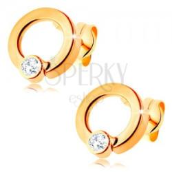 A sárga 585 aranyból készült, briliáns fülbevaló egy fényes karikából áll, amelyet csillogó, kerek, átlátszó gyémánt díszít. A gyémánt egy kerek foglalatban helyezkedik el, a karika alsó részében. Biztonságos viselését stekker teszi lehetővé. Fülbevaló átmérője: 8 mmEgy gyémánt átmérője: 2,5 mmGyémántok teljes súlya: 0,13 ctTisztaság: SISzín: H-IFülbeva