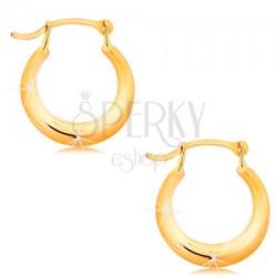 A sárga 585 arany fülbevalót karika alkotja, amely lefelé haladva enyhén szélesedik. A karika felülete enyhén kidomborodó, fényes és sima. A fülbevaló francia kapoccsal rendelkezik, ahol a hullámos szár a szembe lévő villába kapcsolódik. Karika szélessége: 2 mmBelső átmérő: 8 mmKülső átmérő: 12 mmFülbevaló súlya: 0,5 gFémjelzéssel ellátott. Az ár egy párra von