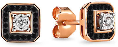 Fülbevaló tiszta és fekete gyémánttal, rózsaszín arany, modell KU1416RB