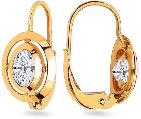 14 karátos sárga aranyból készült arany fülbevalók. A fülbevalók átlátszó cirkonnal tűnnek ki, ovális arany keretben. Az ékszer alkalmas mindennapi viseletre, de különleges alkalmakra is.