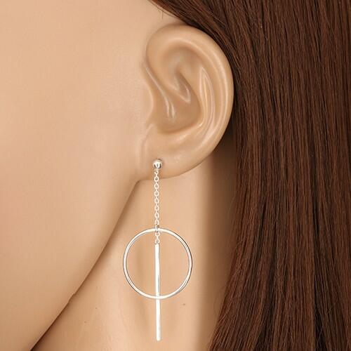 A fülbevaló 925 ezüstből készült, alapja egy kisebb gyöngy, amelyen ovális szemekből álló rövid lánc lóg. A láncra egy széles karika és keskeny rúd van rögzítve. A fülbevaló felülete sima és fényes. Bedugós, stekkeres kivitel. A fülbevaló mérete (zárszerkezettel együtt): 22 x 56 mmA fülbevaló súlya: 3,34 gFémjelzéssel ellátott. Az ár egy párra érvényes.