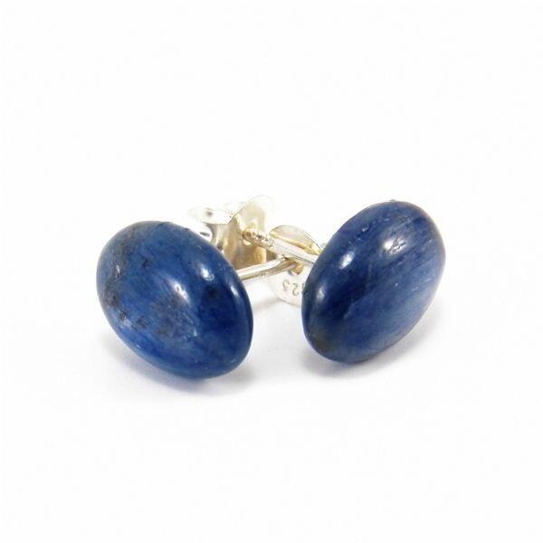 Kianit (disztén ) drágakőből készült, ovális csiszolású kaboson ( cabochon ) bedugós ezüst fülbevaló. Ásvány mérete: 8*10 mm A termékből több darab is van, az ásványok színe némileg eltérő lehet. A kianit gyógyhatása