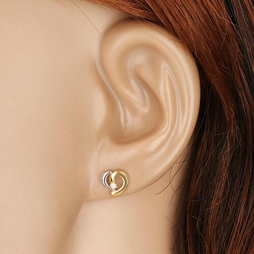 585 kombinált arany fülbevaló, szabálytalan szív alakban. A szív két ívből tevődik össze, az egyik ebből fehér arany a másik pedig sárga arany. Középen egy csiszolt gyémánt helyezkedi el négyes foglalatban. Zárszerkezete stekkeres. Fülbevaló mérete: 7 x 7 mmGyémánt mérete: 1,5 mmSúly: 0,03 ctTisztaság: SISzín: H-ISúly: 0,4 gFémjelzéssel ellátott. Az ár egy párra