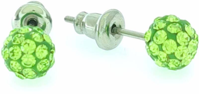 Csillogó almazöld Swarovski kristállyal díszített shamballa gömb fülbevaló. A fülbevaló alapja ezüstszínű nemesacél. A kristályok ragasztott foglalatban helyezkednek el. Időtálló, mutatós ékszer. Antiallergén ékszer. Fülbevaló átmérője: 6 mm. A nemesacél ékszerek rendkívül népszerűek kedvező tulajdonságaik miatt. A nemesacél semmilyen nikkelsót nem bocsájt ki