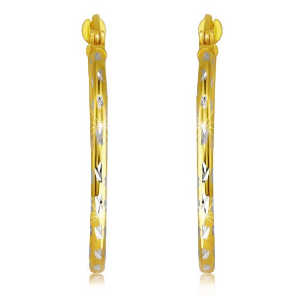 A 925 ezüstből készült fülbevaló arany színű, kis kereszt formájú ezüst bevágásokkal. A fülbevaló felülete sima és tükörfényes. A fülbevaló francia zárral rendelkezik. Átmérő: 30 mmSzélessége: 2 mmA fülbevaló súlya: 2,2gAz ár egy párra vonatkozik. Fémjel - Van.