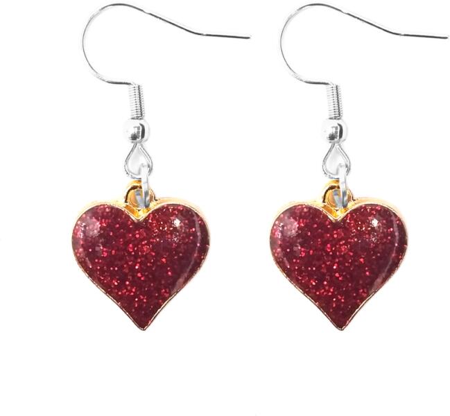 Anyaga fémötvözet. Bordó csillogó szív fülbevaló. Param éterek: Medál / mérete kb. 1,7 cm. Anyaga fémötvözet. Akasztó rozsdamentes acél.