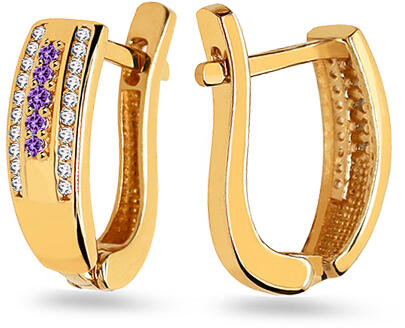 Arany fülbevaló lila cirkonokkal, modell IZ26822N