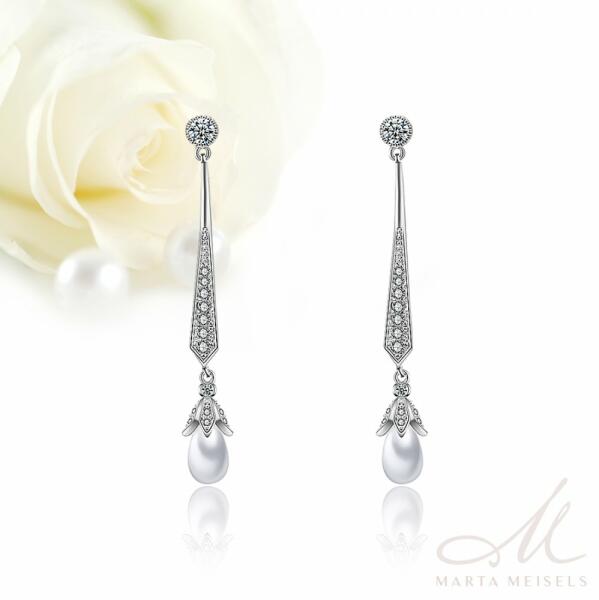Csodaszép kidolgozású, elegáns, lógós menyasszony fülbevalóapró kristályokkal és egy csepp alakú gyönggyel díszítve. Valódi fehérarany bevonattal, bőrbarát alapanyagból. Fülbevaló hossza: 4,9 cm Elegáns menyaszonyi, alkalmi fülbevaló, melyet törtfehér és hófehér ruhához egyaránt ajánlunk. Elegáns kidolgozású ... Nikkelmentes, bőrbarát anyagból készült ... F