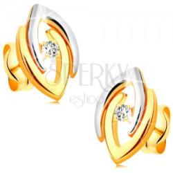 585 arany fülbevaló, két vékony patkóból áll, amelyek egymással szemben helyezkednek el. Az egyik sárga arany a másik fehér arany változatban. Középen egy apró kerek cirkónia helyezkedik el. A hátsó része tömör. Biztonságos viselését stekker teszi lehetővé. Fülbevaló mérete: 6 x 10 mmSúly: 0,6 gFémjelzéssel ellátott. Az ár egy párra vonatkozik.