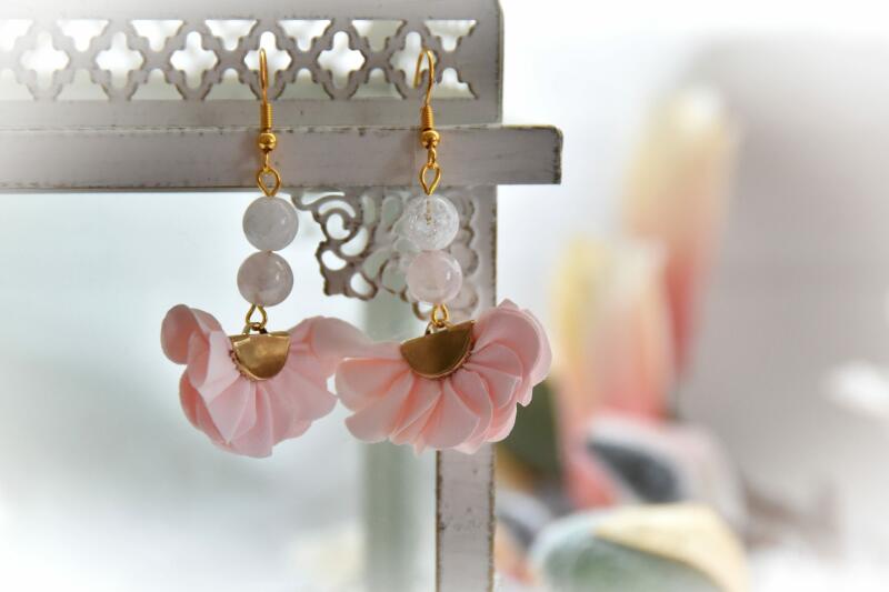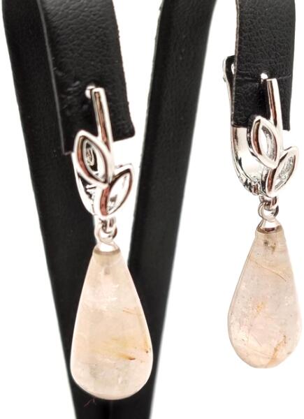 Rutilkvarc fülbevaló (levél záras csepp Ásvány fülbevaló) Egyedi ásvány ékszer.