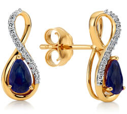 Az Elle zafír és gyémánt fülbevaló sárga aranyból készült, gyönyörű természetes zafírokkal (0,60 ct) és briliáns csiszolású gyémántokkal (0,060 ct) díszítve. Elegáns kialakításuk tökéletes különleges alkalmakra. Nem kell aggódnia, hogy az ékszer kiesik a füléből - a biztonságos gombos (masnis) rögzítés biztos tartást biztosít. Ráadásul a könnyű súly k