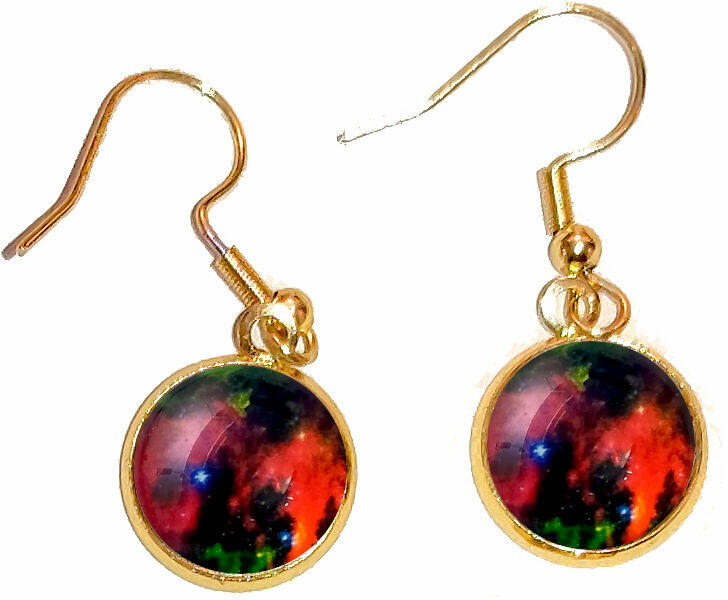 Világűr piros üveglencsés fülbevaló, 1 pár. Választható arany és ezüst színben . Egyedi, szép, kézzel készült üveglencsés ékszer, akár ajándékba is ideális. Param éterek : Az alapja fém, rajta domború üveg (12 mm). Fémrészek anyaga rozsdamentes acél. – A fülbevaló akasztós vagy franciakapcsos, készlet szerint küldjük. Ez a termék rendelésre készül, ezért