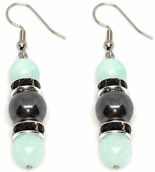 Az ékszer ásványai és tartozékai: – 10 mm-es fekete ónix achát – 8 mm-es matt türkiz jade – Ezüst színű fekete köves strasszos díszekAkasztó anyaga rozsdamentes acél. Áruházunkban találsz hozzáillő karkötőt is. Az ékszerben található ásványok jótékony hatásai: JADE Testünkre: Mivel a Jade kő kedvező hatással van az anyagcserére, ezért megelőzheti az elhí