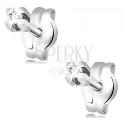 Az 585 arany fülbevalót egy kerek, csiszolt, átlátszó gyémánt alkotja. A briliás négy fényes, lekerekített végű pálcával van rögzítve, amelyek egy keskeny, hosszúkás és szögletes foglalatot képeznek. Biztonságos viselését stekker teszi lehetővé. Egy gyémánt átmérője: 1,5 mmFülbevaló méretei: 2,3 x 2,3 mmGyémántok teljes súlya: 0,03 ctTisztaság: SISzín: H-IF