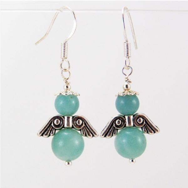 6 és 8mm-es kerek amazonit ásványból készült angyal fülbevaló. A fülbevaló teljes magassága: 4cm Az alap fülbevaló orvosi acél akasztóval készült, de választható ezüst akasztóval is. A fülbevaló modell másik drágakővel is kérhető értékegyeztetéssel. Az amazonit gyógyhatása